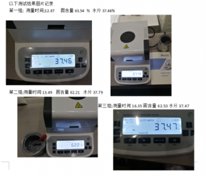 | 產(chǎn)品狀態(tài); | 重量 | 測(cè)試溫度 | 測(cè)試時(shí)間 | 固含量結(jié)果 | 水分結(jié)果 |